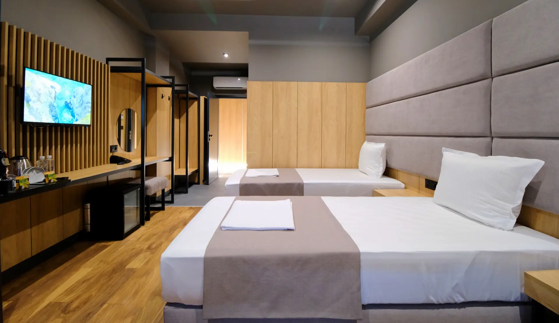 City ViewThe double room offers the accommodation of a bedroom (200*200 cm) or two separate beds (100*200 cm), with the possibility of using an additional sofa bed.